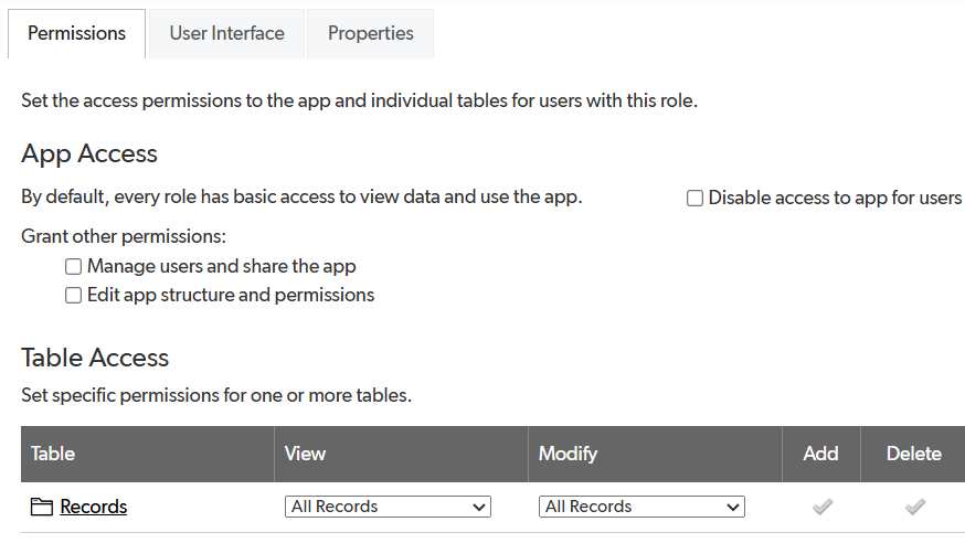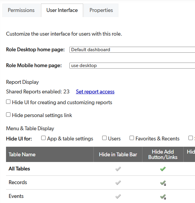 At the top of the app there is a button that says "Add new record in any table". When a user clicks this button a drop down of every table is shown to them, even tables I have hidden from their role. Is there a way to remove this button completely or at least hide the tables I don't want them seeing?