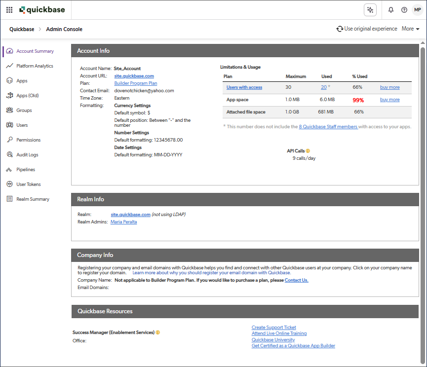 - If you are a realm admin as well as an account admin, the drop down under Quickbase Admin reads Manage the realm. It takes you to the admin console, but you need to then click Account Summary to navigate to the Account Summary page.