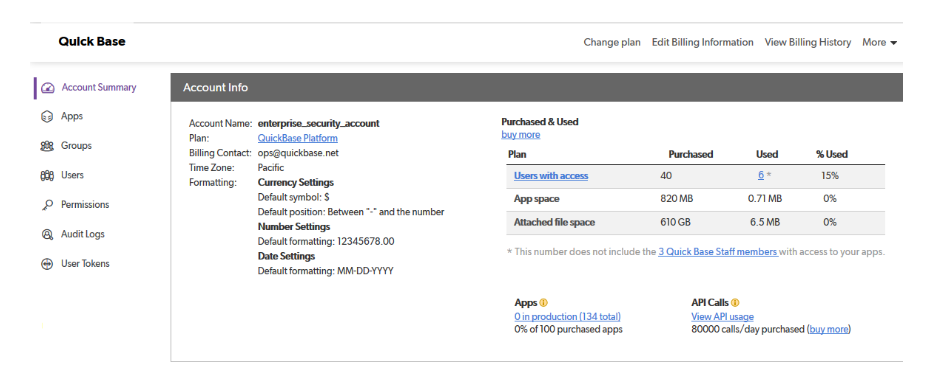 These settings will decide who can create new apps, build automated workflows, and administer your account as well as technical settings like how each new app handles things like currency symbols and time zones by default. During your trial or initial account creation some of the defaults were set up for you, but now that you are a customer you will want to make sure they align with your business.